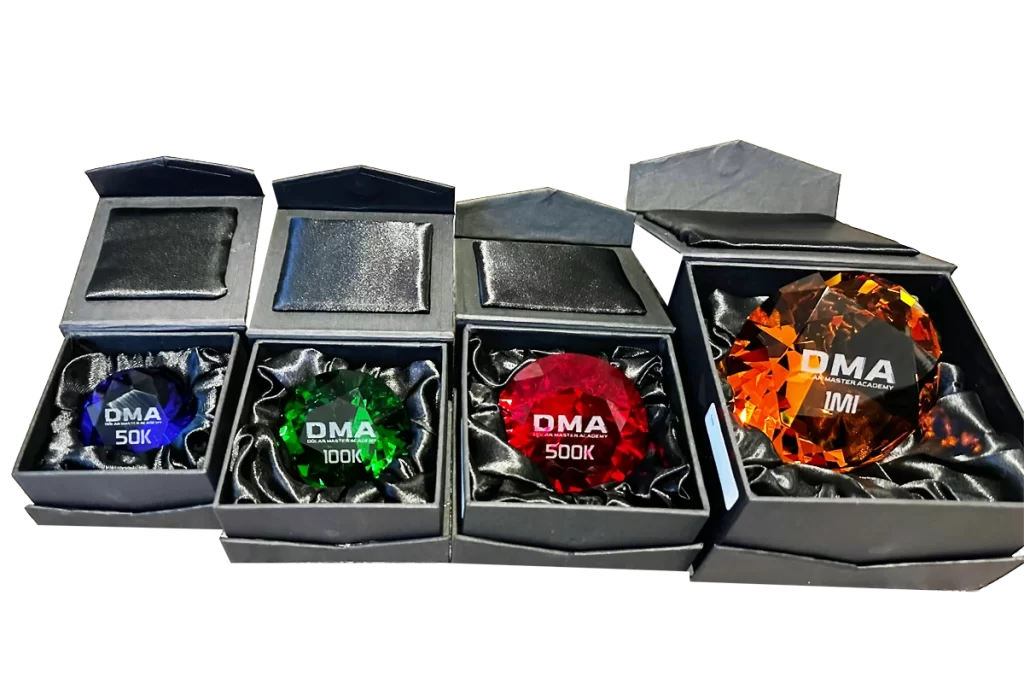 Ao atingir faixas de faturamento no primeiro ano de sua jornada, o seu esforço será reconhecido, você receberá nossas premiações que representam a sua jornada no DMA